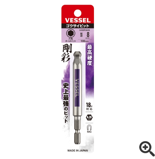 日本VESSEL威威 單頭鋼彩圓形頭內六角批頭GSBP020S